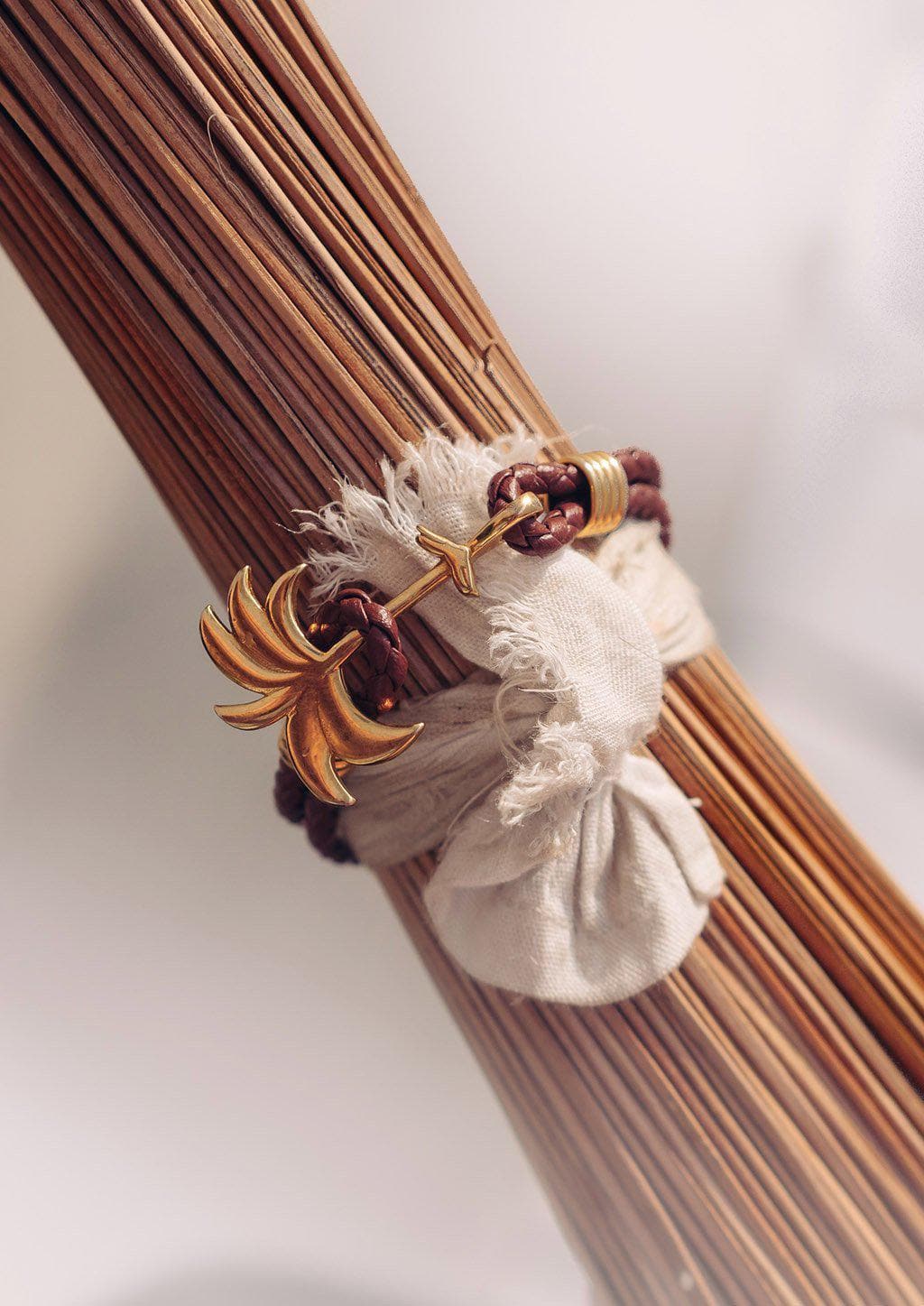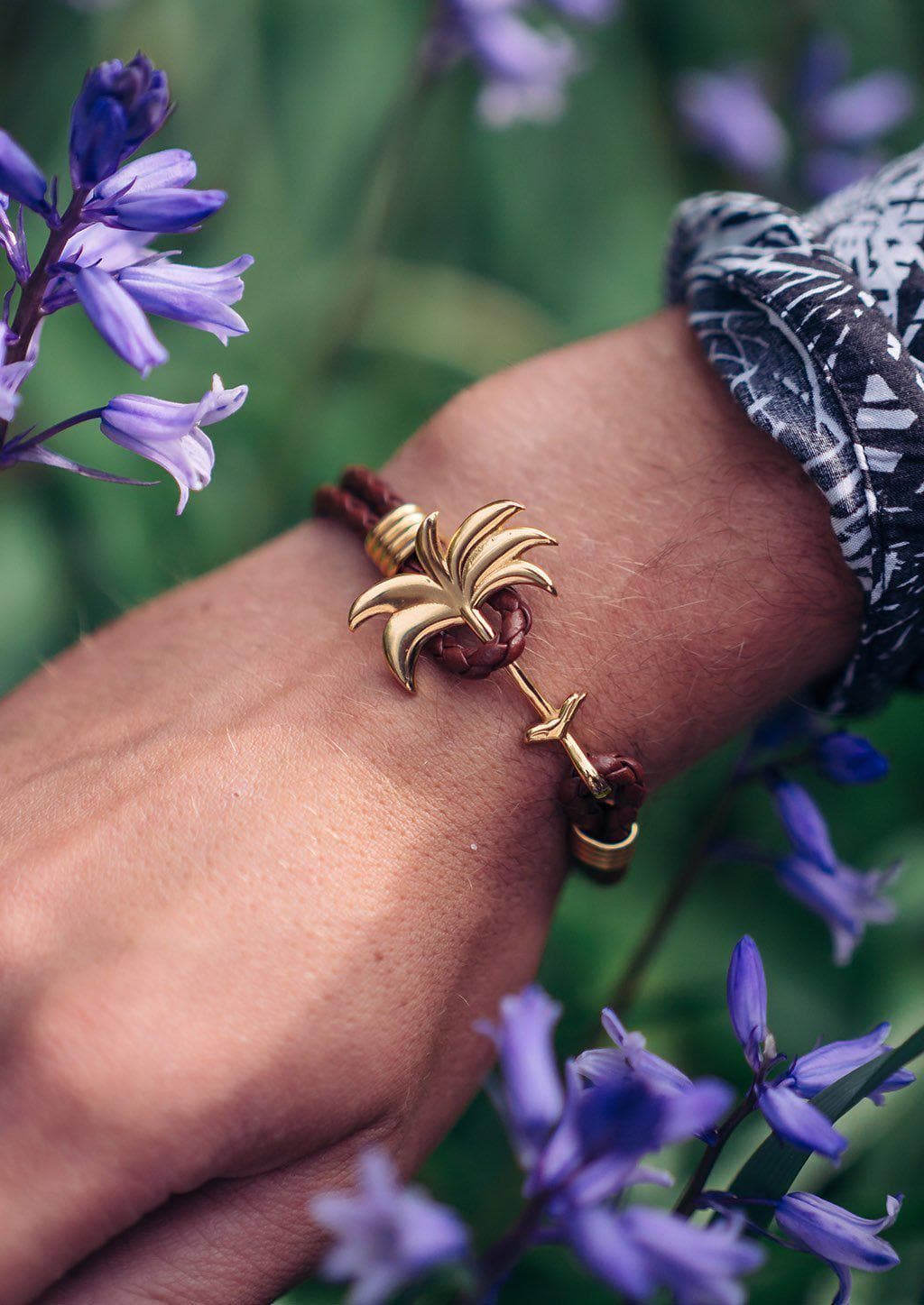 Palm Band Brown Leather Palm Tree Anchor Bracelet 360 Video.